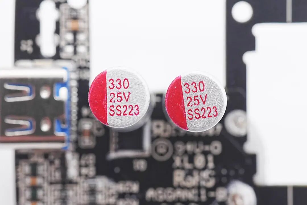 两颗输出滤波固态电容规格为330μF 25V,两颗并联。