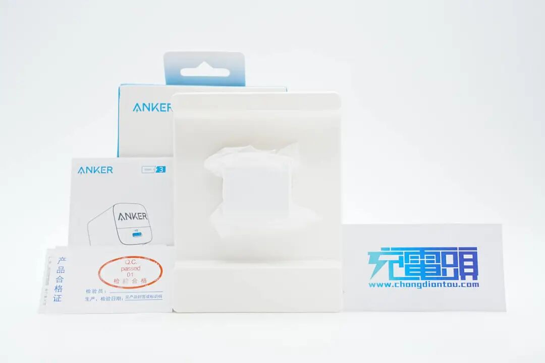 包装盒正面印有ANKER安克品牌、充电器名称、外观以及四大卖点。