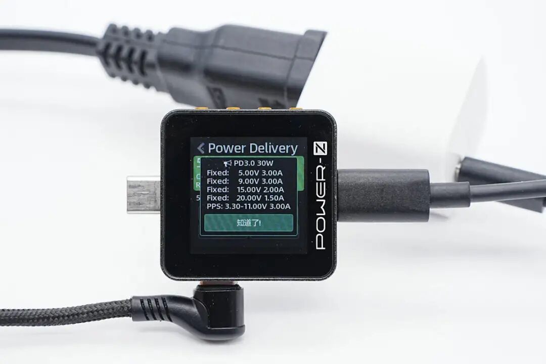 此外还具备5V3A、9V3A、15V2A、20V1.5A四组固定电压档位,以及3.3-11V3A一组PPS电压档位。