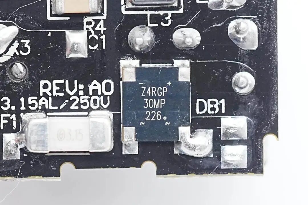 充电器输入端一览,焊接贴片保险丝,贴片整流桥,合封氮化镓芯片等器件。