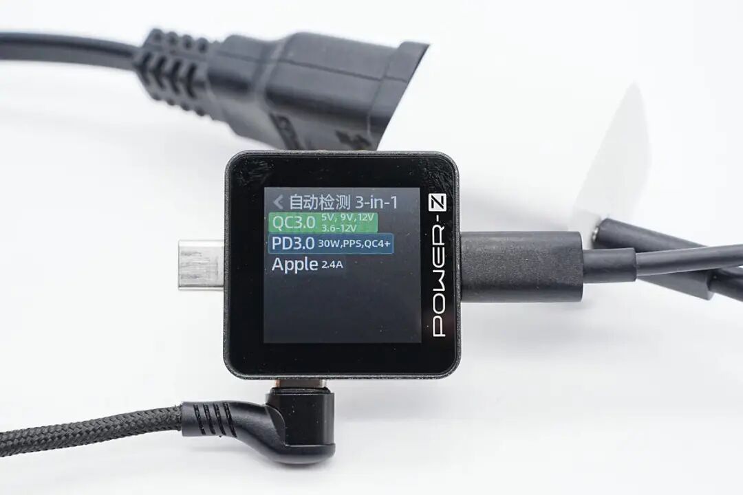 使用ChargerLAB POWER-Z KM002C测得充电器支持QC3.0、QC4+、PD3.0、PPS、Apple 2.4A充电协议。