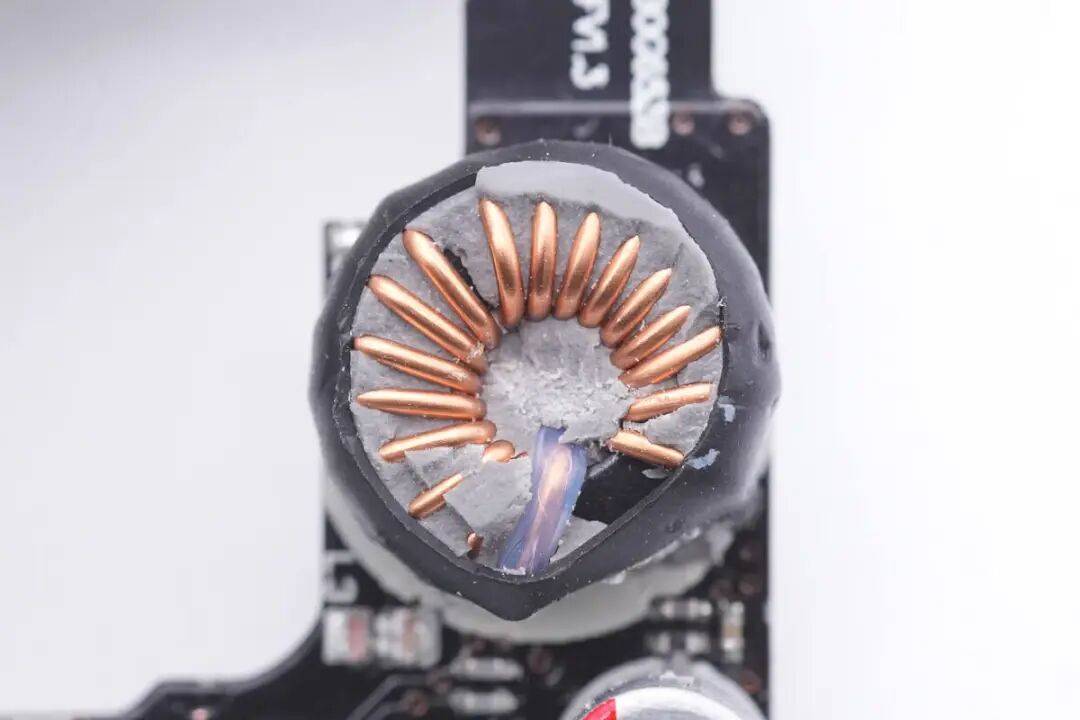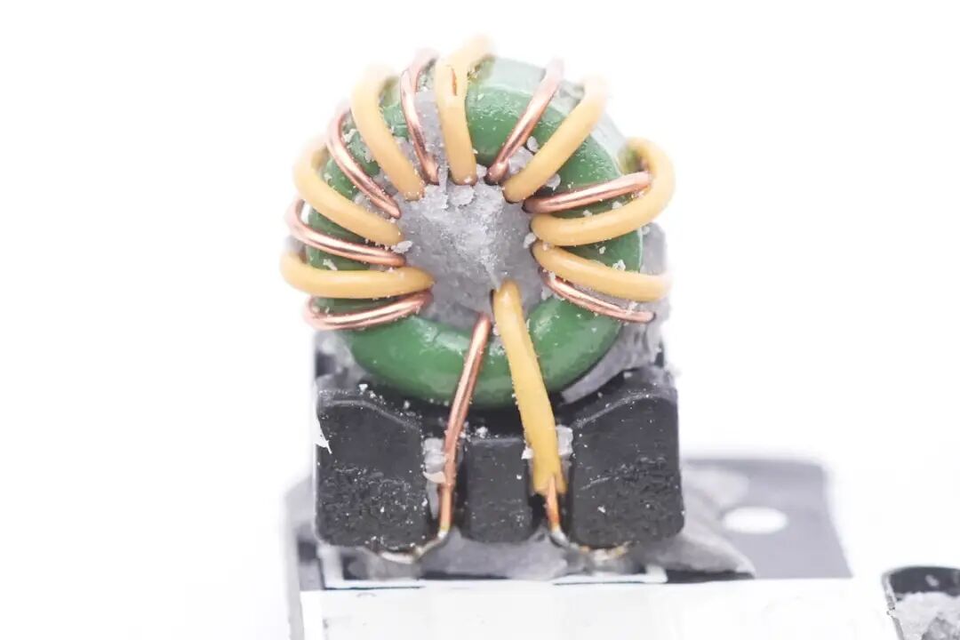 磁环降压电感特写,外套热缩管绝缘,漆包线穿管绝缘。