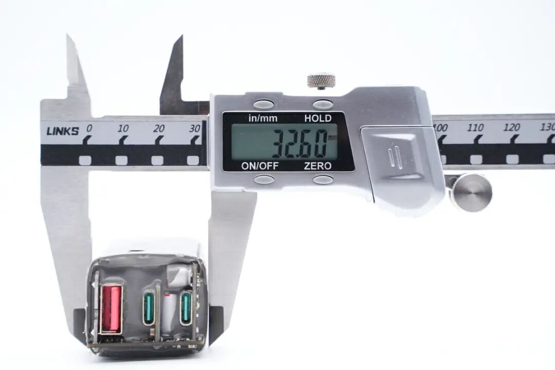 这款充电器采用长条机身设计,USB-C1支持65W输出功率,USB-C2支持33W输出功率,USB-A口支持30W输出,性能主流。下面充电头网就带来这款氮化镓充电器的拆解,看看内部的设计和做工如何。