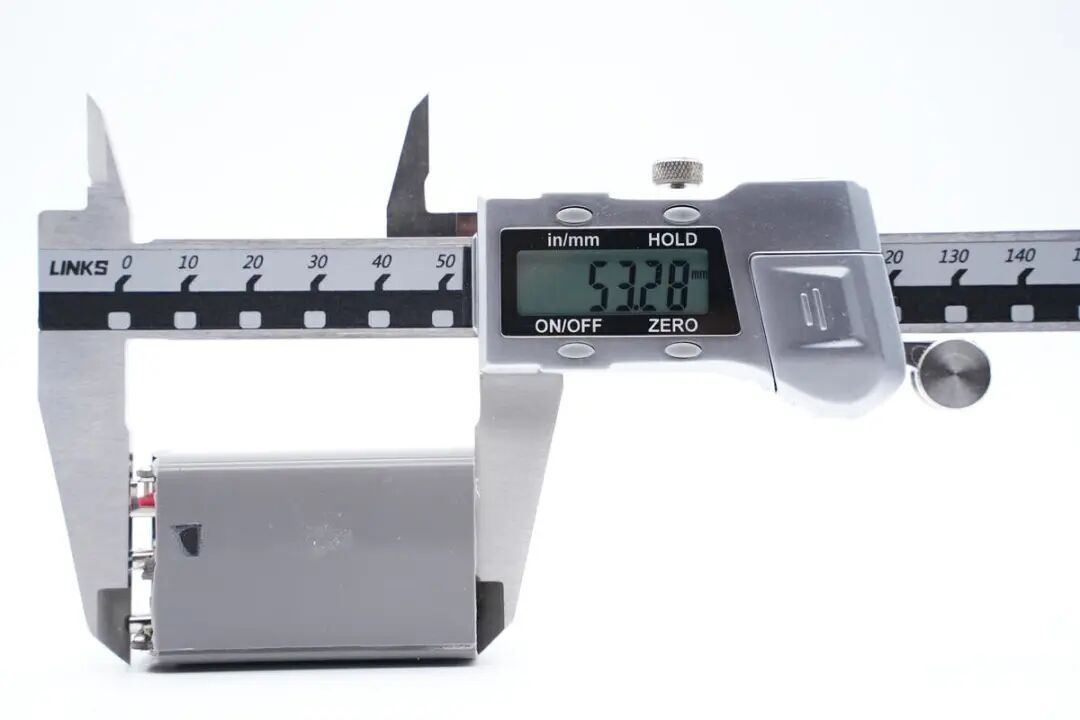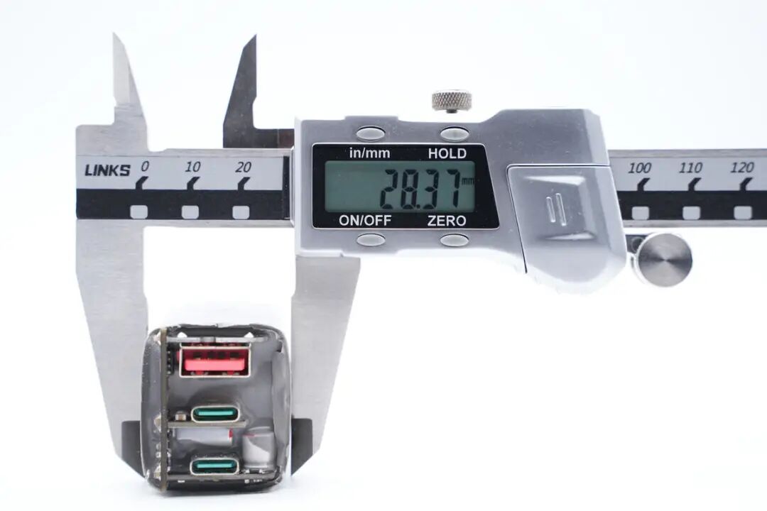 使用游标卡尺测得PCBA模块长度约为53.28mm。