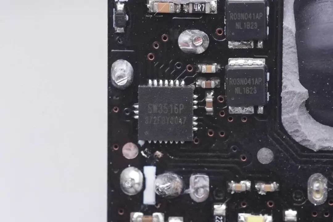 另一路降压主控芯片采用智融SW3516H,用于进行降压控制和协议识别。智融SW3516H是一款高集成度的多快充协议双口充电芯片,支持A+C口任意口快充输出,支持双口独立限流。