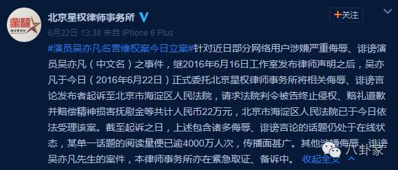 最后,留着着大放实锤的小G娜和卓伟不告,告所谓的“相关侮辱、诽谤言论发布者”是有多心虚?危机公关这么做除了能骗骗粉丝还能糊弄谁?吴亦凡团队这诉讼的意思莫非是嫌大家用词不客观?所以以后大家的标题必须是《吴亦凡疑似与若干名女子发生不知道正当与否关系》这样的?还是嫌大家伙儿没有在这一事件中挖掘凡凡的闪光点诸如《身价千万仍不忘初心,吴亦凡嫌商务仓贵勤俭持家》?荒唐死了好吗!