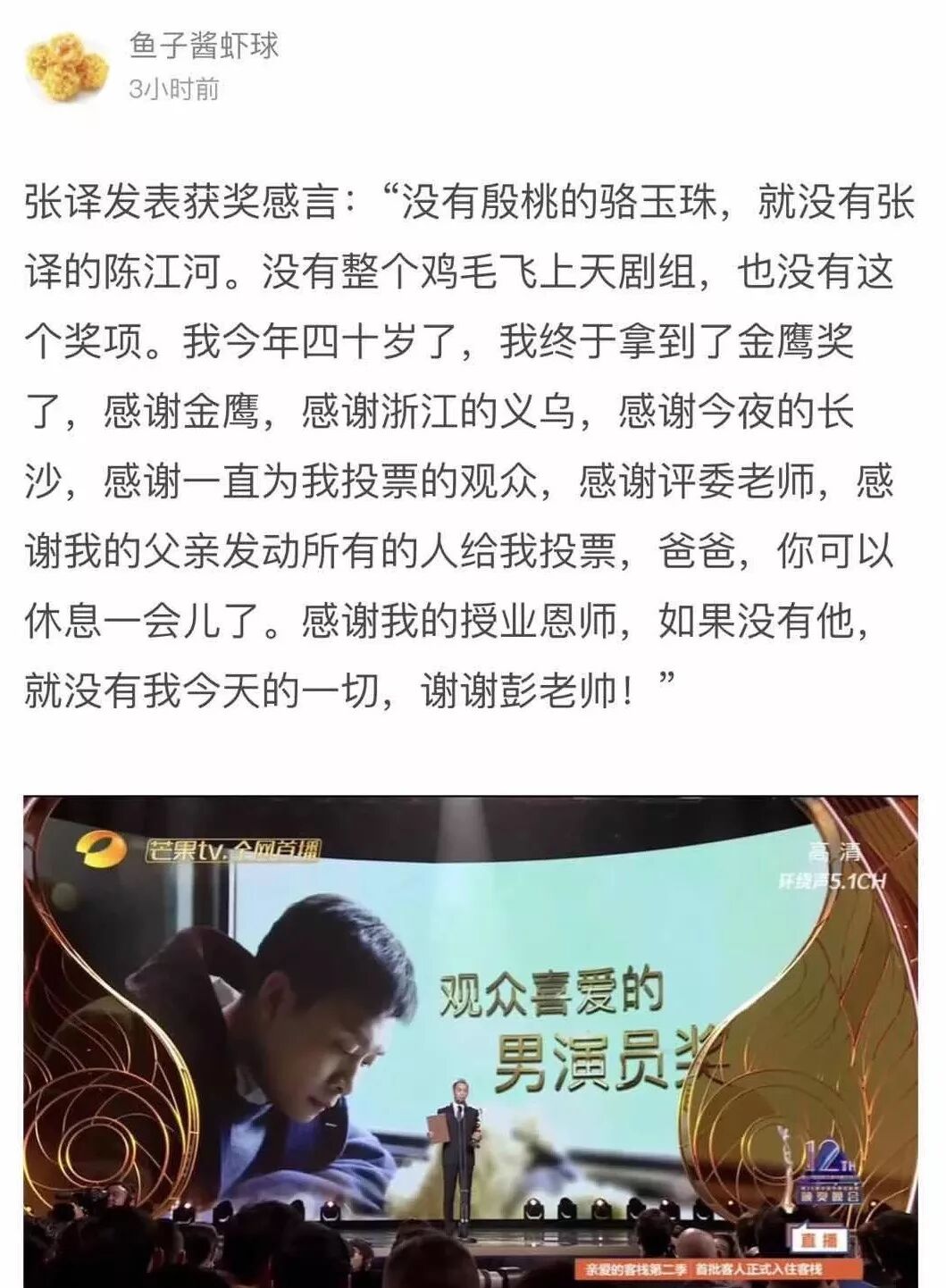 看到与李易峰并列、好不容易拿到观众最喜爱演员奖的张译的发言,你会气死+2……