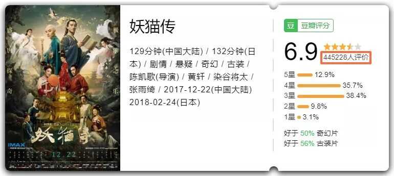 如果说短评数可以靠水军刷分顺带刷出量来,那长评数占评分总人数的比例,还是可以侧面佐证评分人数是否存在很大水分的——真要刷长评,成本无法想象。