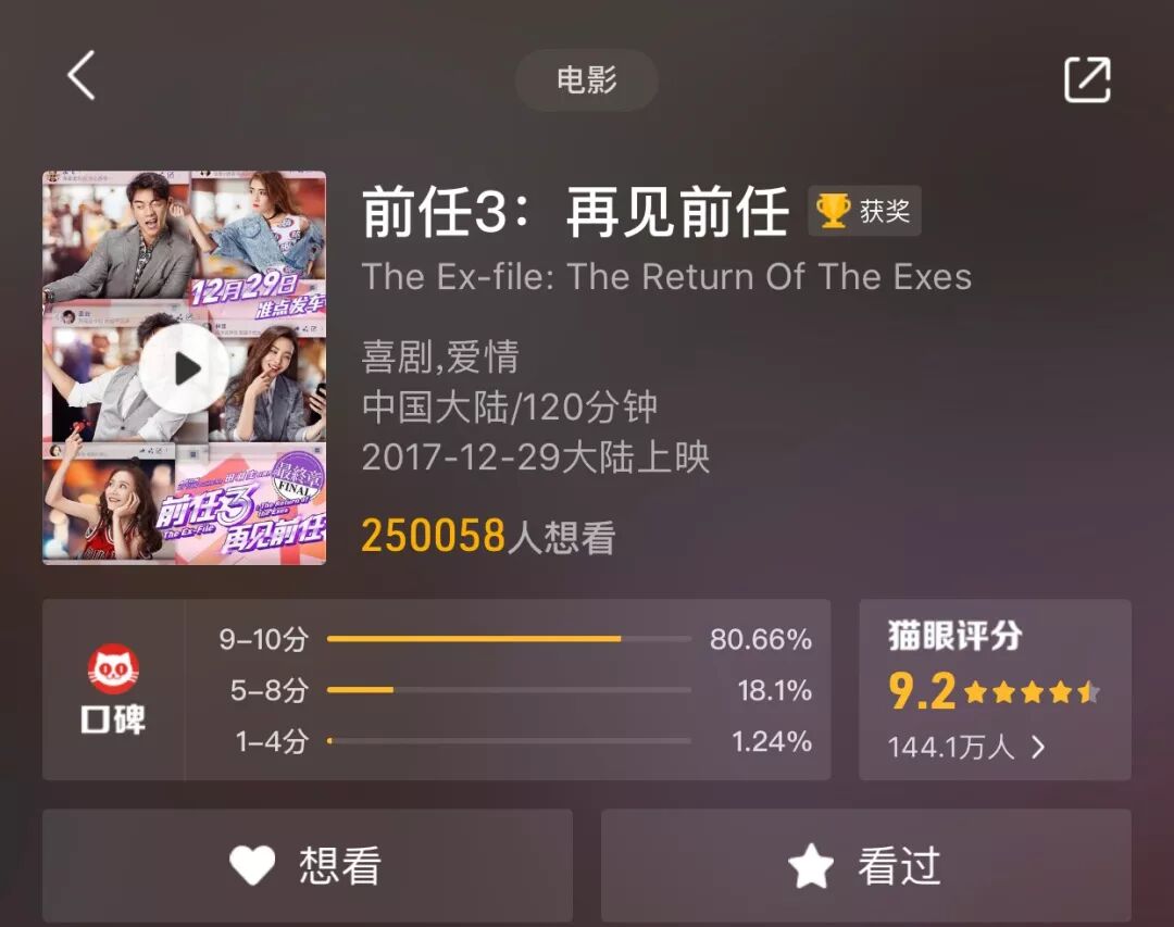 最典型如《前任3》,口碑在三个平台间天差地别: