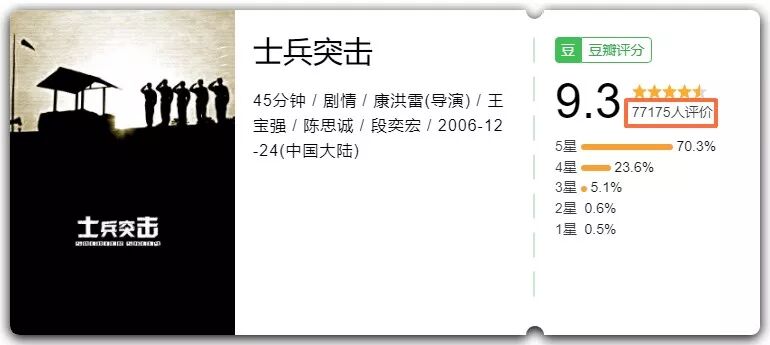所以,拿2014年的《战长沙》与2005年的《亮剑》、2006年的《士兵突击》去对比评分人数,继而得出前者刷分的结论,我个人觉得,起码证据还不充足。