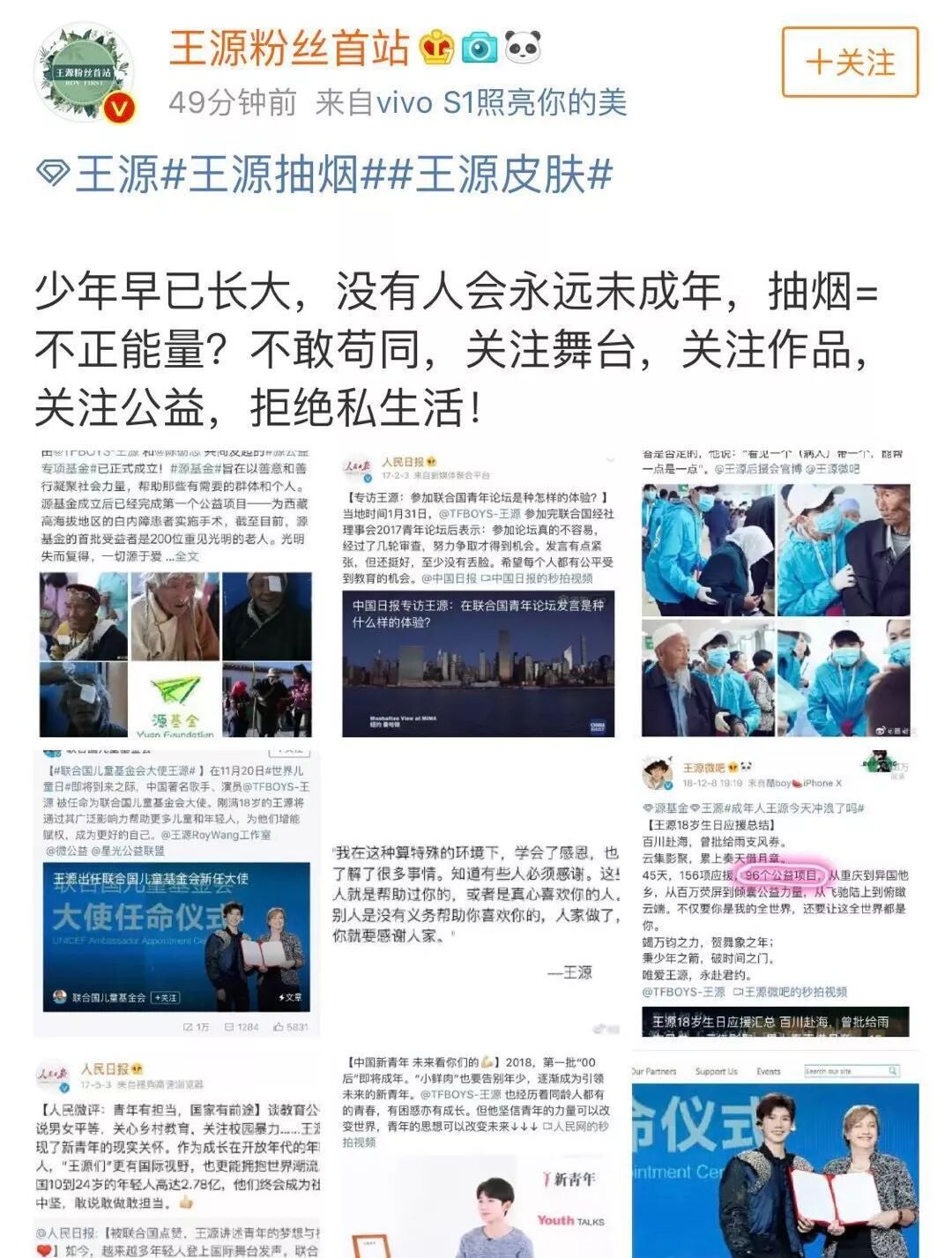 翻翻微博,粉丝当前的主要说辞,也都是在强调王源已成年,吸烟无大错。