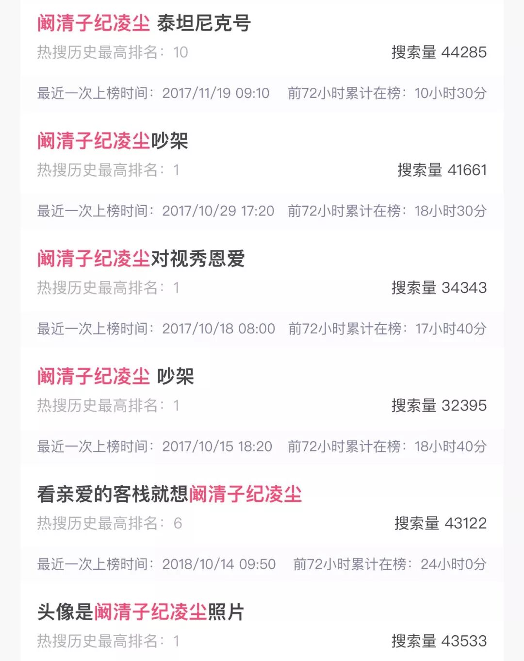 比如2017-2018的包年用户阚清子+纪凌尘,活活在热搜榜上演足全套恋爱戏份。