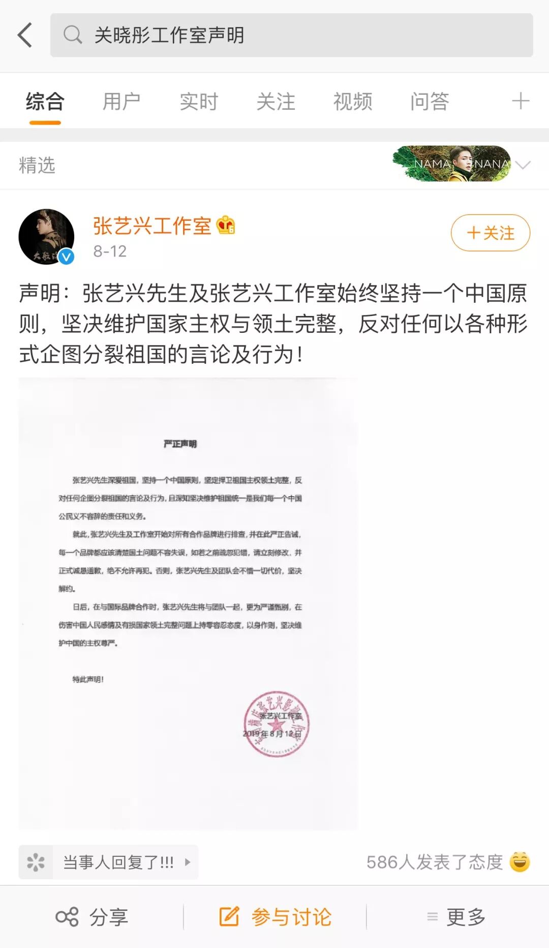 有的则直接声明自己代言已到期,目前已与品牌无关系,如关晓彤、许魏洲。