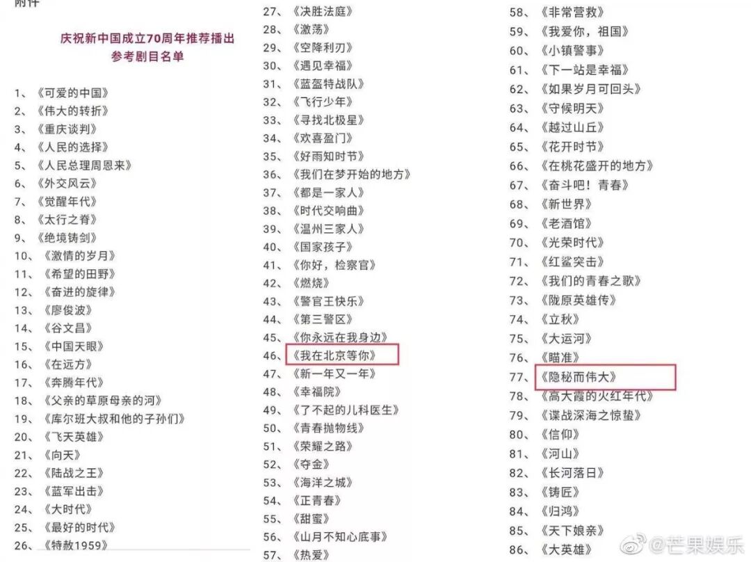 《在纽约》再三改名,终于过审;《隐秘而伟大》是《白夜追凶》导演执导,谍战题材。理论上,这种能扛剧明星出演的献礼剧应是一线卫视的首选,所以总算播出有望。