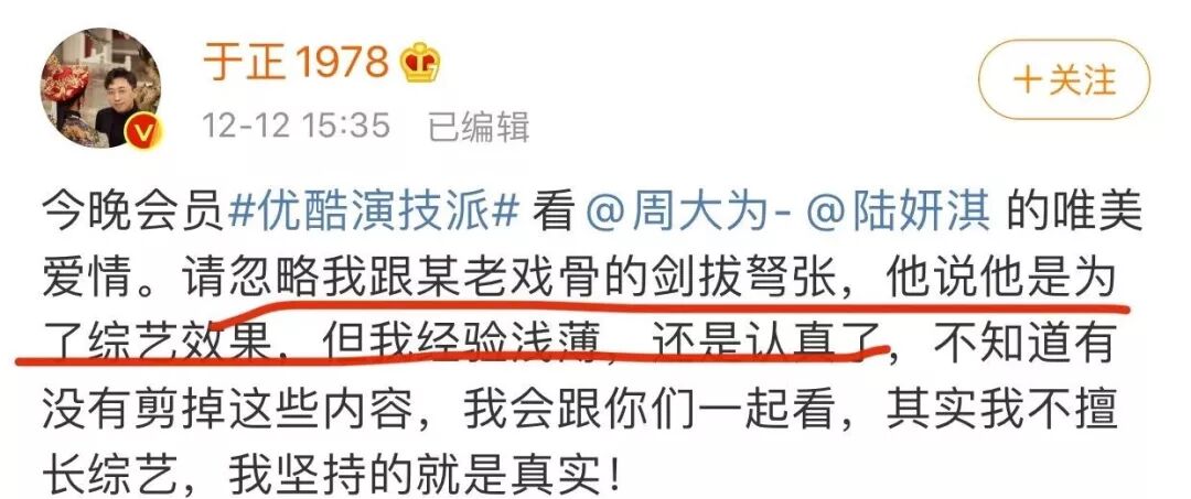 于正的难看脸如实反映了他的心情,在微博里他也哭得很大声!