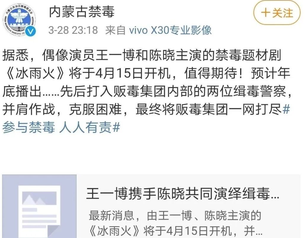 ——吴磊粉丝说,我们家是正经演员,压番爱豆没毛病。听这话,不知道的还以为是王千源粉丝讨论《在劫难逃》呢……正经演员吴磊成年后的代表作,是甚至被同龄关晓彤碾压的《影》?还是不与秦昊对戏就整段垮掉的《沙海》?鹿晗是演技糟烂的爱豆不假,可吴磊演了这么多年戏,又好到哪里去了呢?鹿晗有《上海堡垒》,吴磊也有《阿修罗》啊。鹿晗有《甜蜜暴击》,吴磊也有从扮相到人物塑造都一言难尽的《斗破苍穹》啊。且不提是否成年,迄今拿得出手的角色只有《琅琊榜》里的飞流。恕我直言,卖萌之外,看不到什么演技。就这水平这作品列表,粉丝怎么就好意思鄙视上别人了呢?还不止一次。去年末一部《冰雨火》的网剧爆料,引发了两家震动。据我所知,这部剧因番位问题一直没官宣,结果今年3月,“内蒙古禁毒”官微莫名发布了阵容。这可能狠狠打了陈晓粉丝的脸,因为此前,她们一直疯狂嫌弃这部剧,嫌弃到在爆料的投资人(不知真假)微博下吵架。