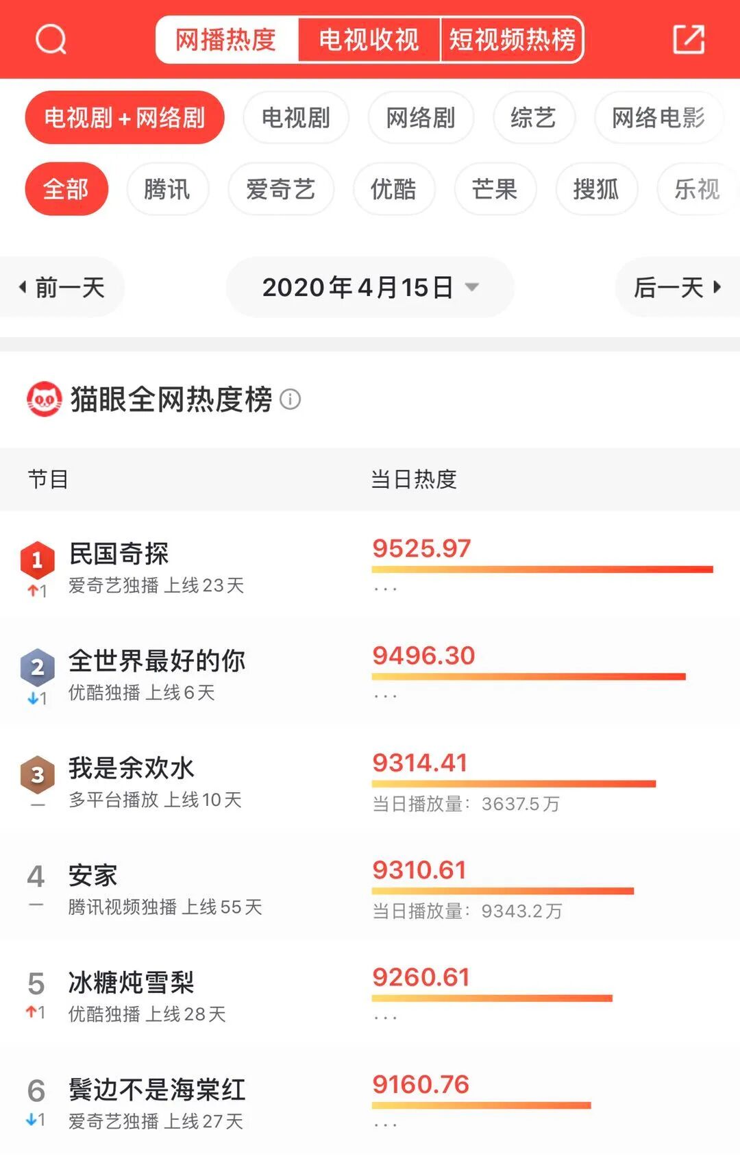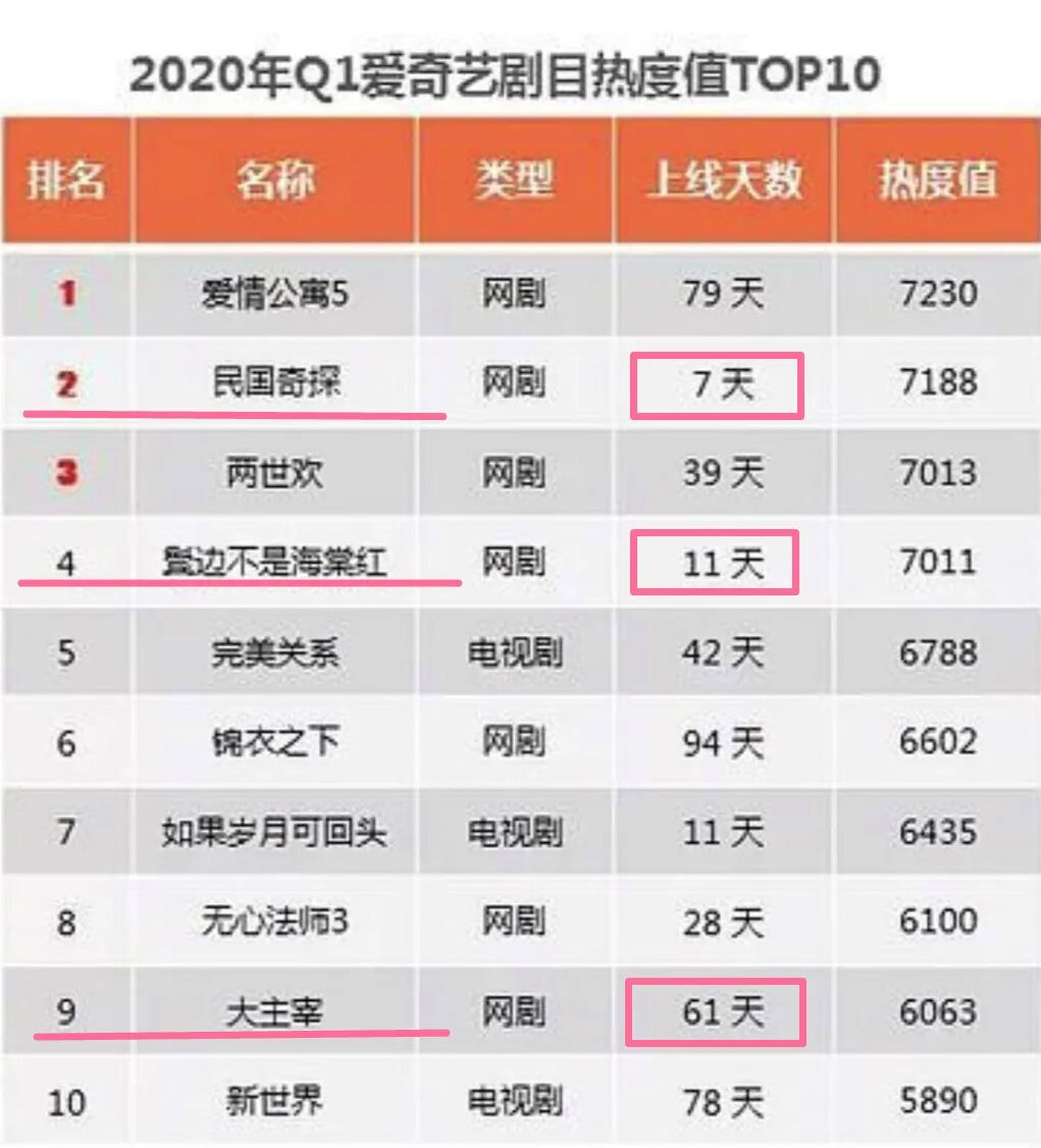 昨天看到2020年一季度爱奇艺剧集热度表,结果有些出乎我的意料。