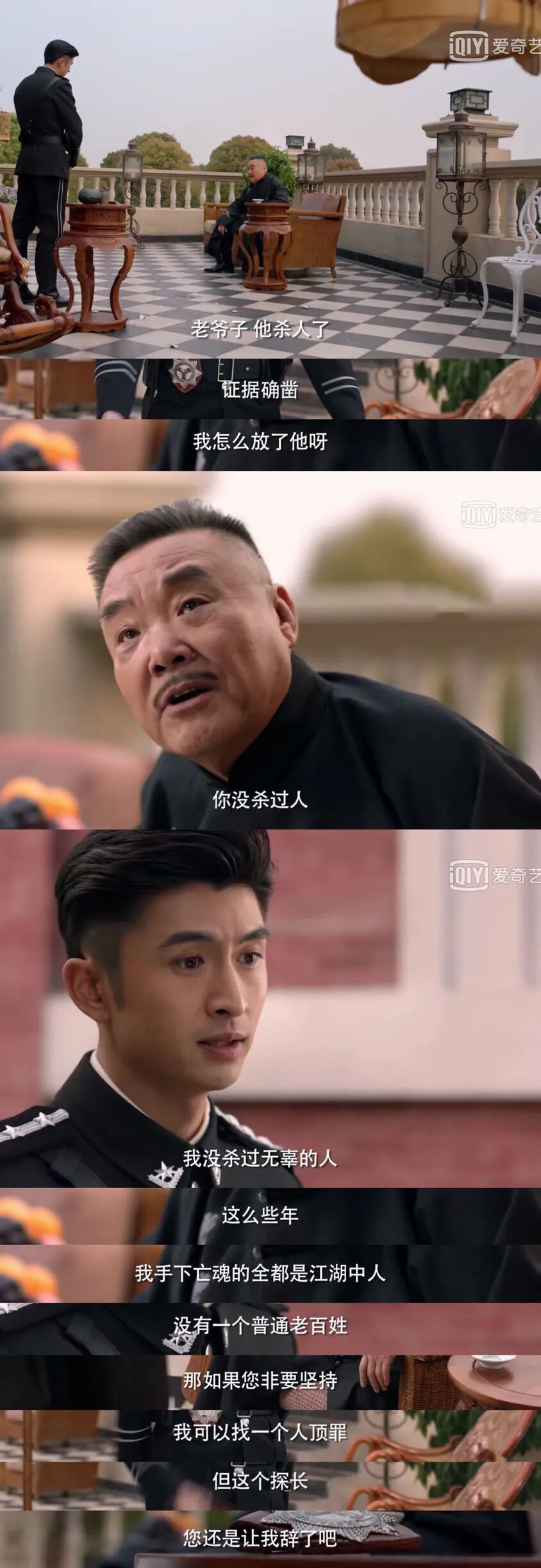 拉他入伙的是张云龙饰演的乔楚生乔探长,被黑帮大佬白老大送去租界警察局做探长的前江湖人士。