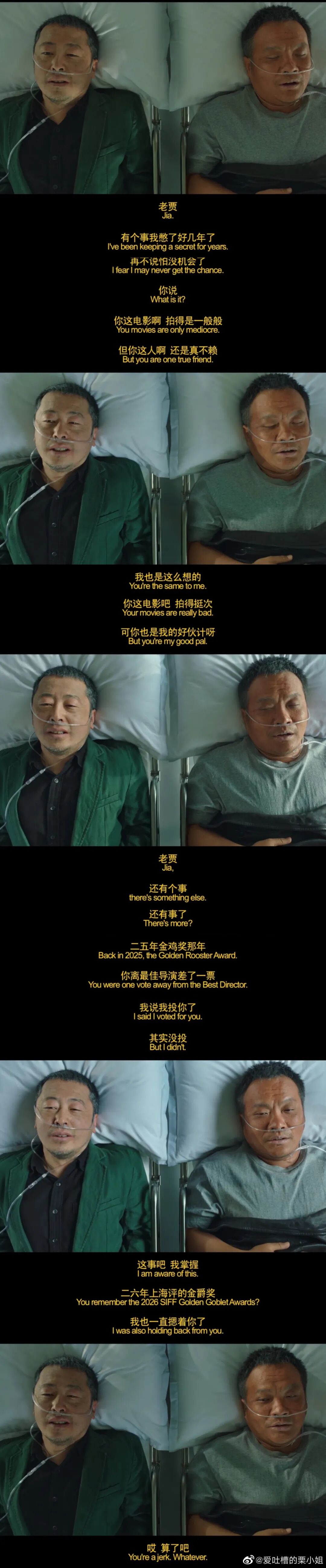 当差点挂了的宁浩对贾樟柯说,我有好几个电影想看没看呢……![]()