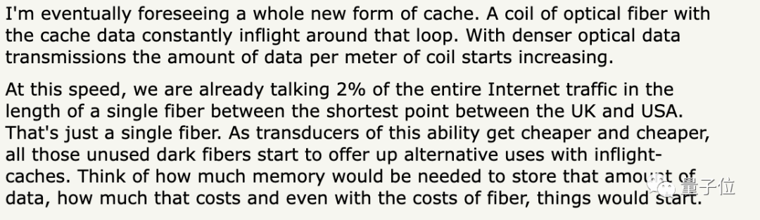 这可能会引导出一种全新的缓存形式,数据将不断围绕着一圈光纤飞速传播。