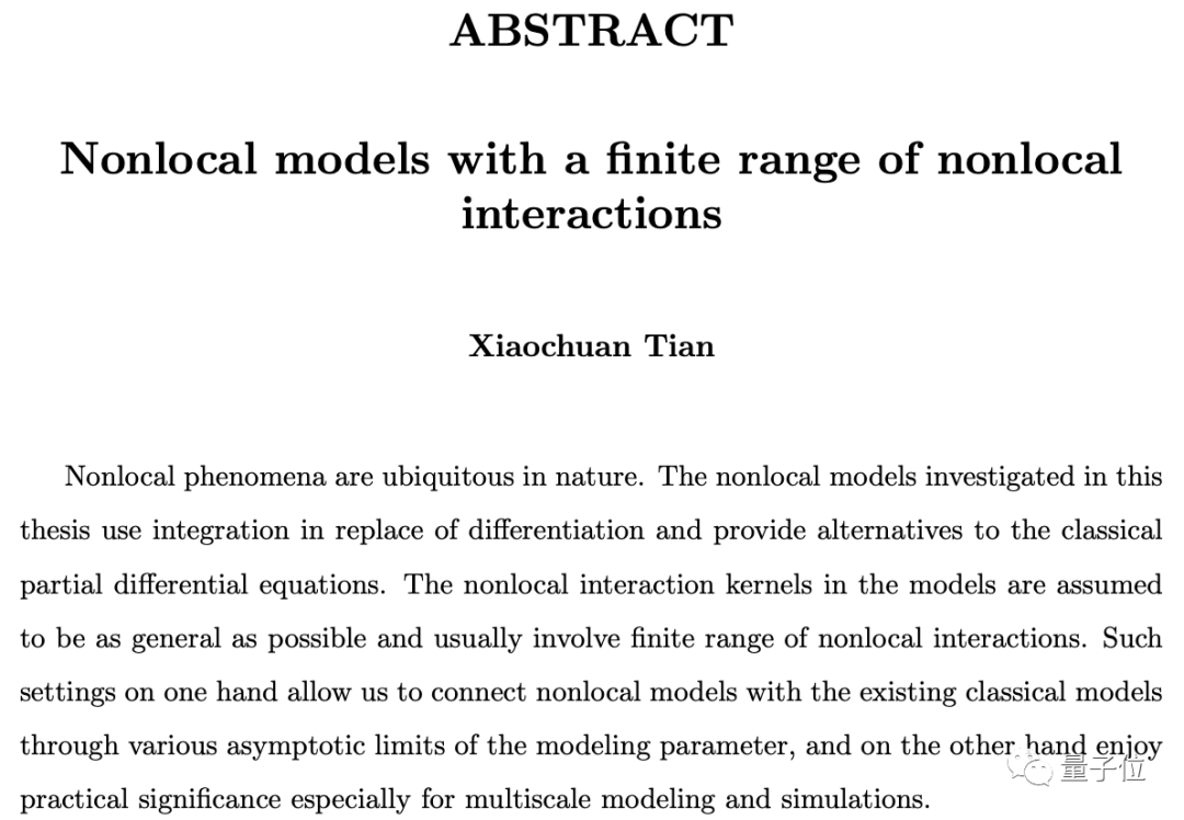 她的博士论文曾获得过丘成桐发起的新世界数学奖,论文用非局部模型采用积分代替微分,为经典偏微分方程提供了替代方法。