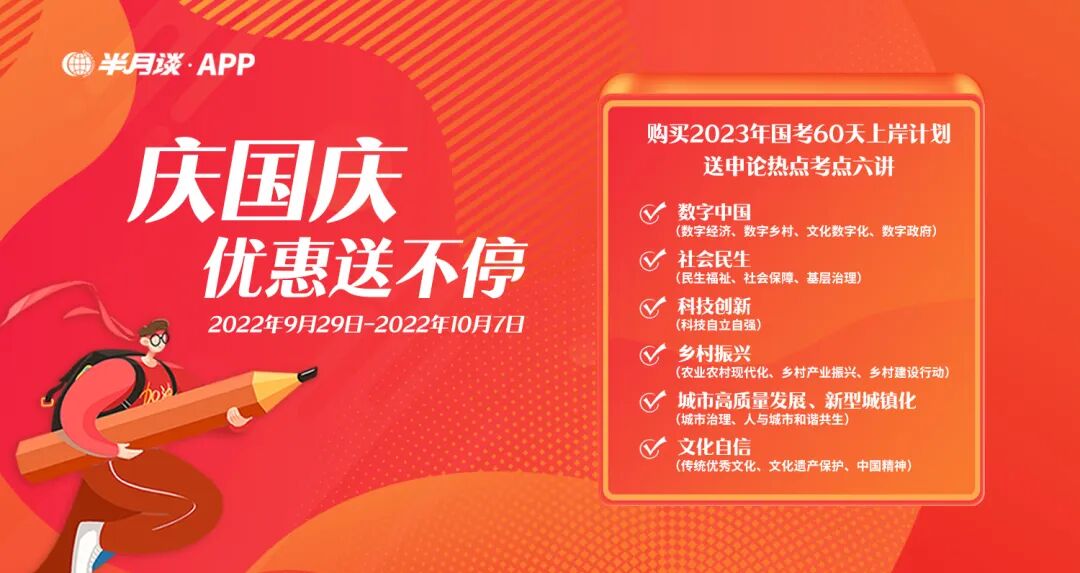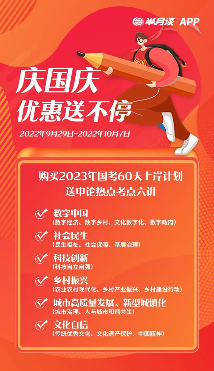 现购买《2023国考60天上岸计划》,送6节申论热点考点,让你的申论备考有底气、有信心!