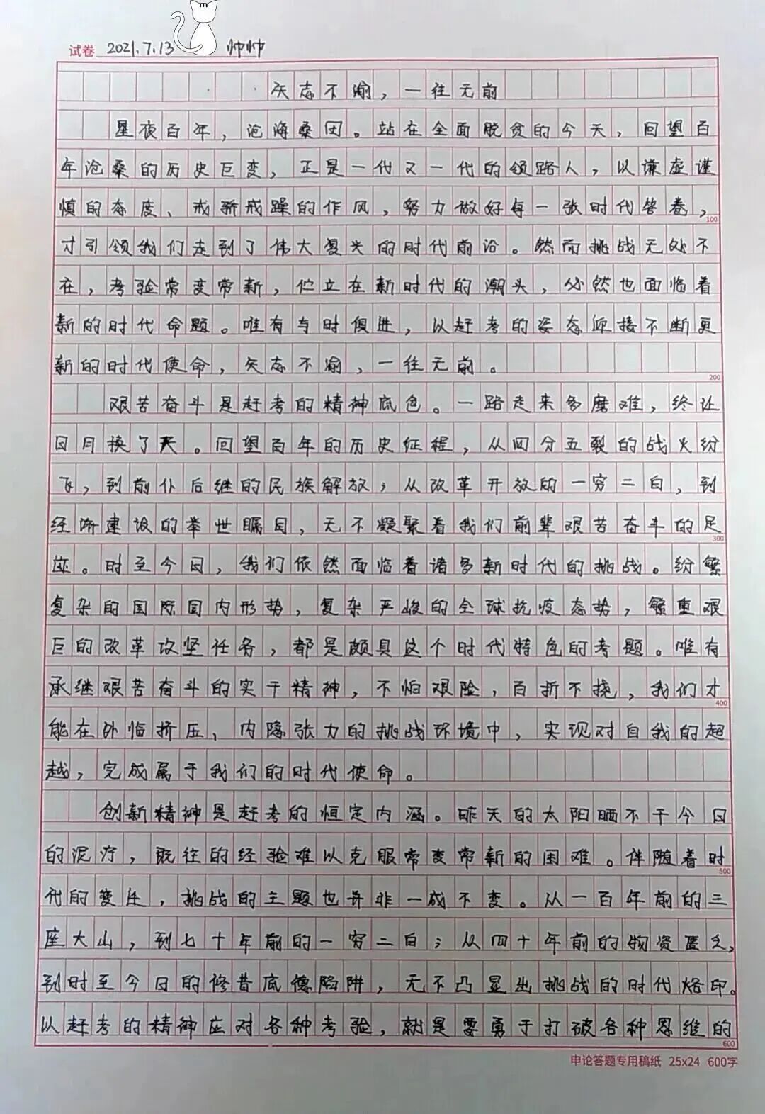 这就要求书写不潦草,要易于辨认,还需注意的是,不可以超出试卷印好的方格,规整地写在方格内。