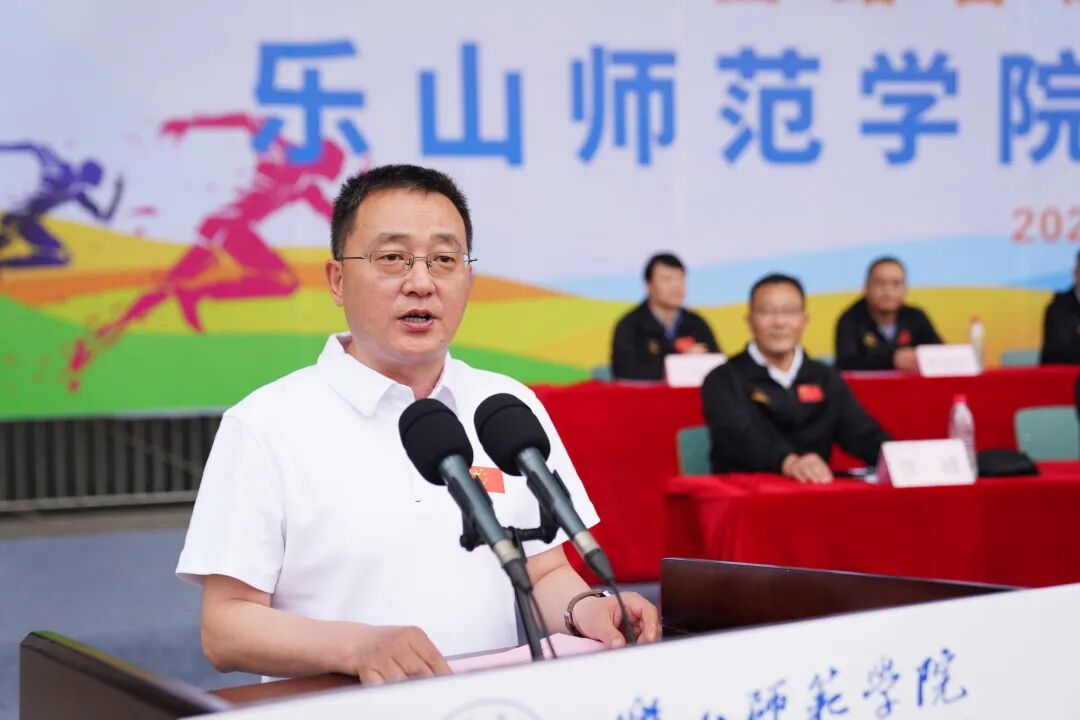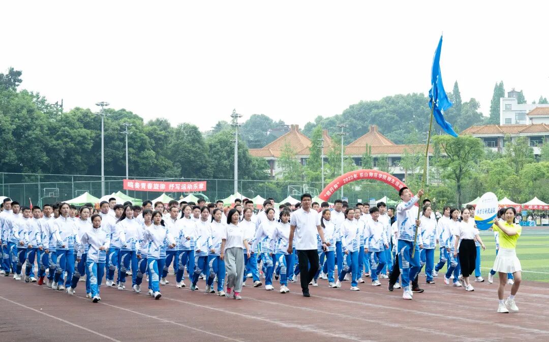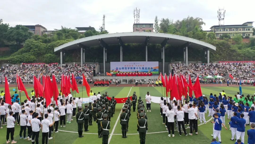 开幕式举行了庄严的升国旗仪式,奏唱中华人民共和国国歌。开幕式首次举行了乐山师范学院校旗、运动会会旗升旗仪式,奏唱乐山师范学院校歌。