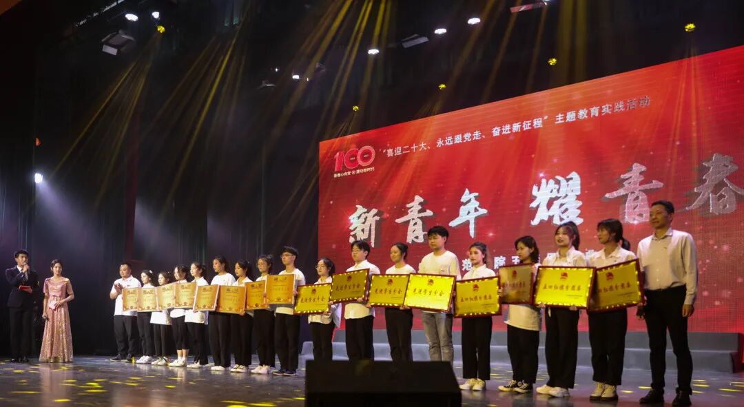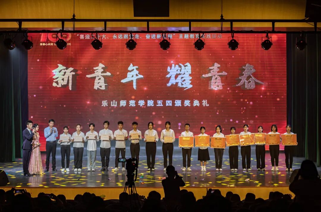 为激励青年坚定不移听党话、跟党走,努力成长为堪当民族复兴重任的时代新人,2022年4月28日下午,由共青团乐山师范学院委员会主办、教育科学学院承办的“新青年•耀青春”五四颁奖典礼,在实训楼多功能厅隆重举行。学校党委书记胡丹,党委常委、副校长李朝晖,党委常委、组织部部长江滔,党委常委、宣传统战部部长佘万斌,党委武装保卫部部长贾洪鉴,校团委书记李东,各学院党委书记、副书记以及团员青年代表了此次参加颁奖典礼。