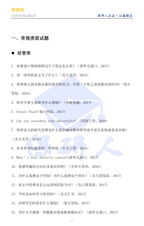 ▲3000+经典保研面试真题汇总