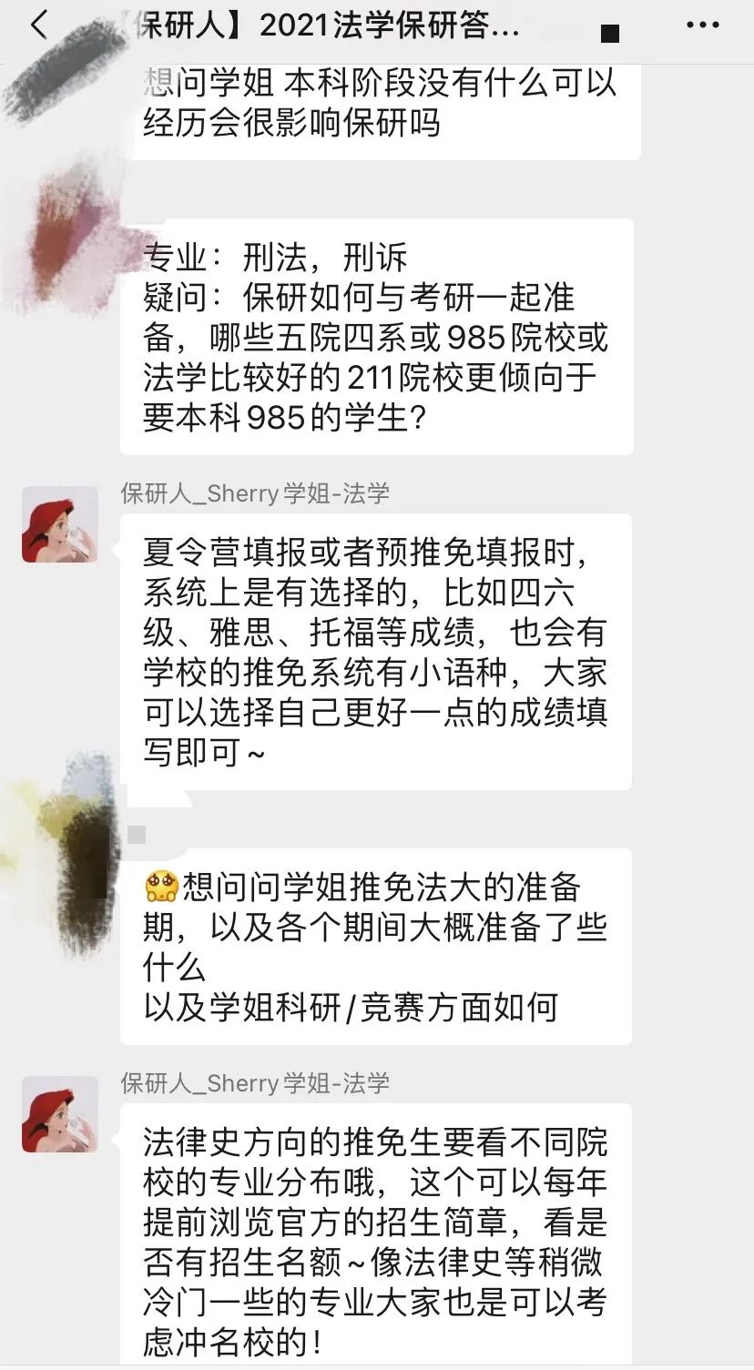 不同于把所有保研er拉到一个答疑群的方式,保研人21年答疑群我们开放了理工、经管、法学、人文四大方向,让答疑更有针对性;