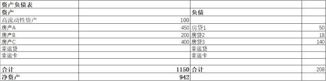 目前有三套零碎房产:A为浦东内环内6楼老小破二室学区房,市值450万,存量贷款50万,主贷人丈夫; B为浦东外环外投资二室房产,市值200万,存量贷款18万,主贷人丈夫,月供1300;C为杭州城区一套三室房产,市值400万,贷款140万,主贷人妻子,月供7000。各种幸运贷可用余额80万,幸运卡20万。