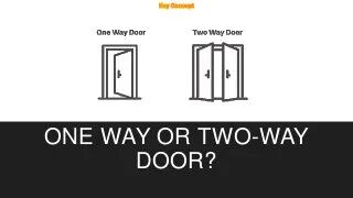 另一种决策是双向门(two-way door),90%以上的决策都属于此。也就是说,可以制定决策并执行,一旦事实证明决策错误,马上可以推倒重来,损失不大。