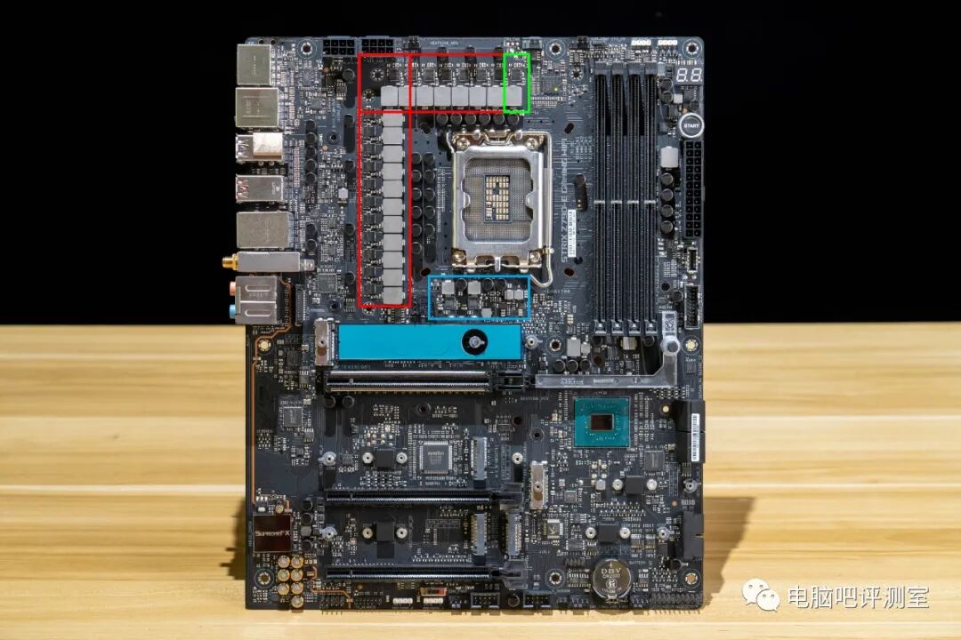 MOS为一体设计的瑞萨ISL99390,为90A级一体MOS。这个规格和上一代的Z690 HERO一致。这么豪华的供电规格,跑13900K会吃力,真的太难以置信了。