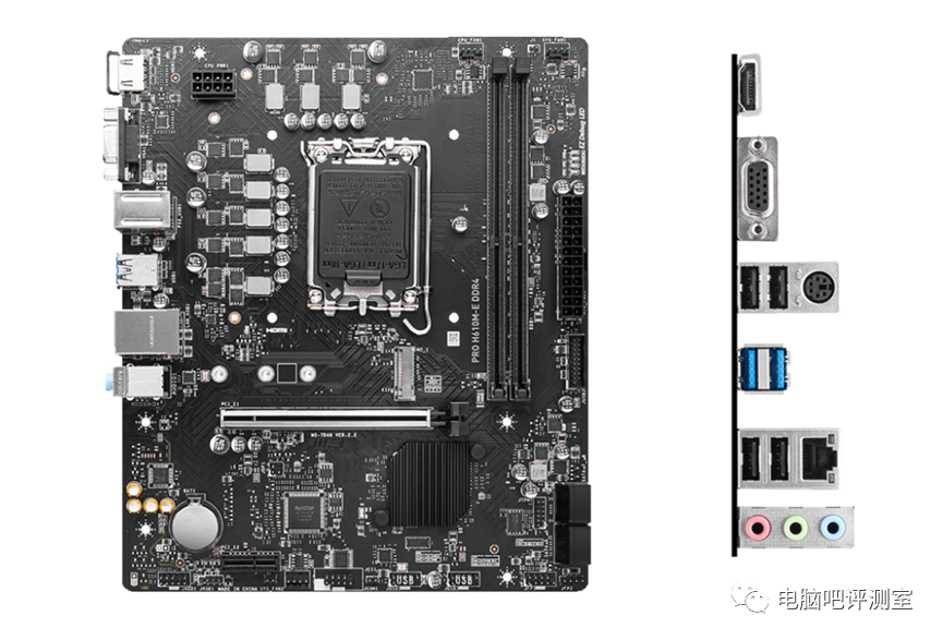 微星PRO H610M-E是一张入门级H610板型,属于适应13代发布的新产品,它的供电设计形式和微星入门级的B760主板保持一致,CPU核心供电不再采用8并联4相的模式,而是采用类似华硕的1+6+(1)相供电,可以满足i5-13400等处理器的高负载稳定运行。主板集成4个USB 3.0(2后置+2前置)、4个SATA III以及一条全速M.2(3.0*4)接口。集成声卡为主流级的ALC897,集成网卡为入门级的RTL8111H千兆。主板自带VGA+HDMI(1.4)显示输出接口,可以接驳各款主流显示器。