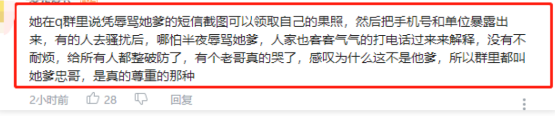 更让人毁三观的是网友还找到了她以前在贴吧上网暴父亲的截图。