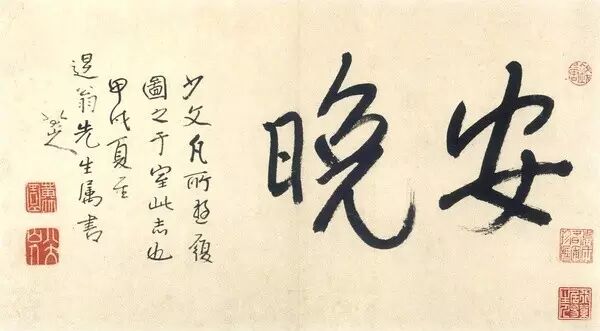 【释文】安晚。少文反所游履,图之于室,此志也。甲戌夏至 退翁先生属书八大山人