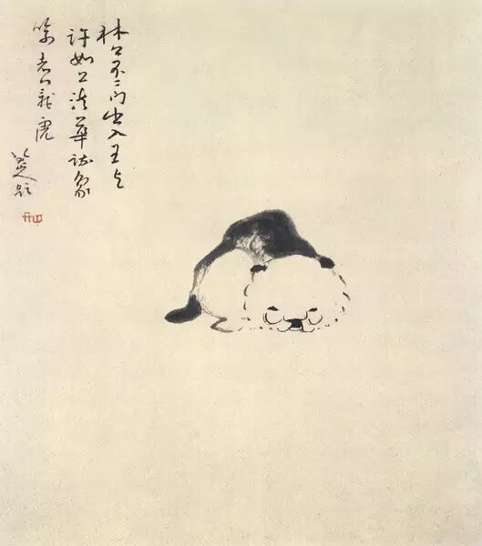 第九开是一只猫。八大山人画的猫基本上都是脑袋大,身子小,弓着背,趴在地上,似乎也在打盹。画上题诗:“林公不二门,出入王与许。如公法华疏,象喻者笼虎。”诗的具体含义难以琢磨,但其中肯定有不少玄奥的禅宗思想。猫同样是一个流行的题材,常常是猫与蝴蝶被画在一起,“猫蝶”即“耄耋”,含有祝寿的吉祥之意。八大山人画的猫并非这种含义。他笔下的虎与猫有时很相似。他在1699年端午节画的一件《艾虎图》中,虎的形象就像极了一只猫,真是所谓“照猫画虎”。正如题诗中提到的“笼虎”,《安晚册》中的猫其实也具有虎的特点,形象之间隐约透出模糊的转化之意。这种物象之间的转变,其实与禅宗的教义之间存在某种关系,不执著于一个特定的物象,正是禅宗的境界。
