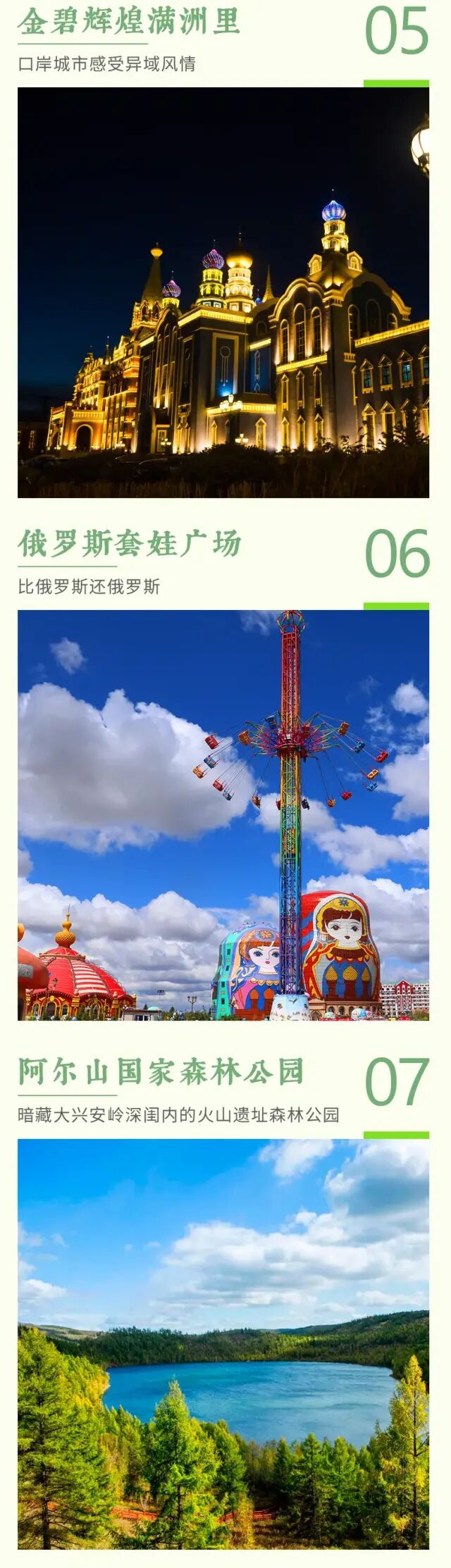 精华美景:额尔古纳湿地、莫日格勒河、草原圣湖呼伦湖、阿尔山森林公园,深度游玩不留遗憾。