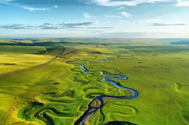 08:00我们一路向北,沿途欣赏老舍笔下的天下第一曲水【莫日格勒河】,成群的牛羊点点绽放,点缀在青绿色的草原之中,仿佛一幅动人的悠然油画。