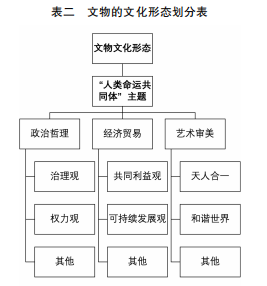 文物是人类记忆的重要载体,是历史的见证者,按文物“能指”与“所指”文化价值,呈现了中华传统文化中治国、理政的智慧,结合“人类命运共同体”的价值观,可以对其进行相关文化主题的分类。