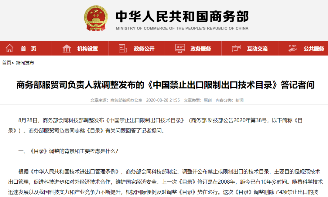 根据《中华人民共和国技术进出口管理条例》,商务部会同科技部制定、调整并公布禁止或限制出口的技术目录,主要目的是规范技术出口管理,促进科技进步和对外经济技术合作,维护国家经济安全。上一次《目录》修订是在2008年,距今已有10年多时间。随着科学技术迅速发展以及我国科技实力和产业竞争力不断提升,根据国际惯例及时调整《目录》势在必行。这次《目录》调整删除了4项禁止出口的技术条目,并对限制出口的技术内容进行了调整。