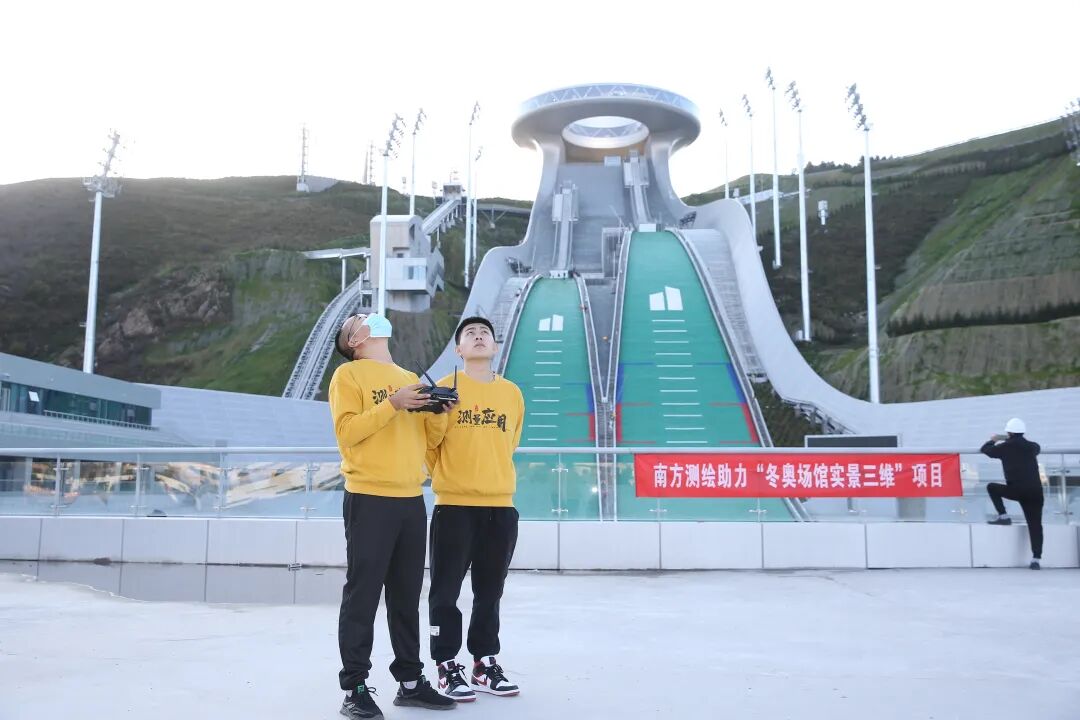 北京冬奥会张家口赛区国家跳台滑雪中心实景三维数据获取项目现场