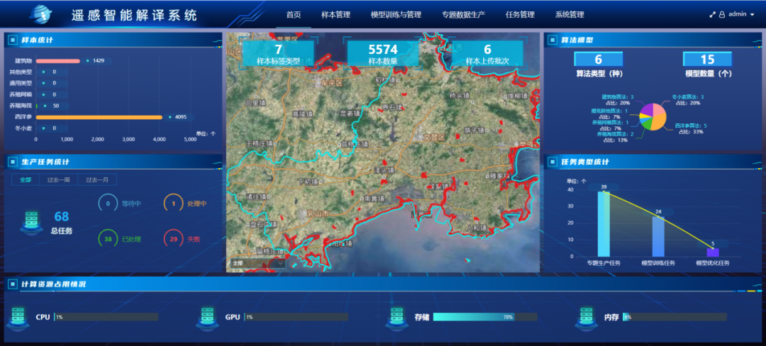 打造遥感智能云服务平台,实现自然资源领域遥感智能解译、智能模型训练、专题生产发布、数据管理、快速渲染、统计分析等一站式服务,管好历史数据、促进成果共享。重点开展自然资源审计、土地利用变化、卫片执法变化、土地非粮化、耕地占补平衡以及填海造地等专题常态化监测服务,联合发布2项地方标准,提升决策精准性与科学性。