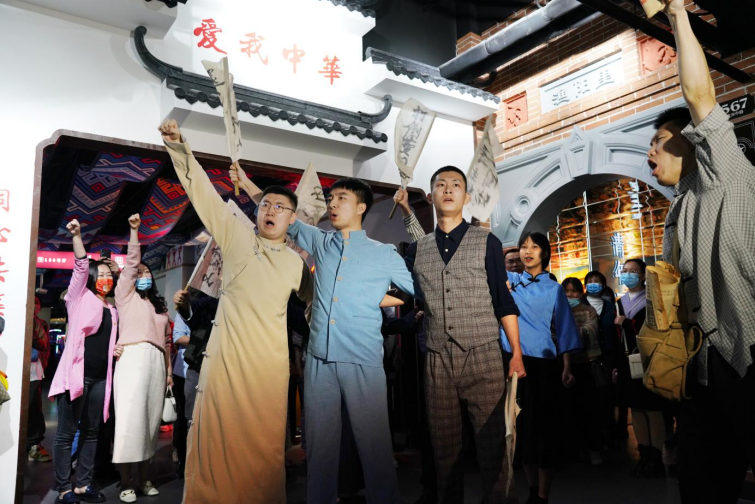 在情景话剧《五四先锋》中,一声“号外!号外!”将学员们瞬间穿越到1919年,一群爱国青年拿着旗子,铿锵有力地高呼“外争国权,内惩国贼”的诉求和主张,每一句呐喊都令人心潮澎湃、热血沸腾,充分体现了忧国忧民、英勇奋斗的五四精神;