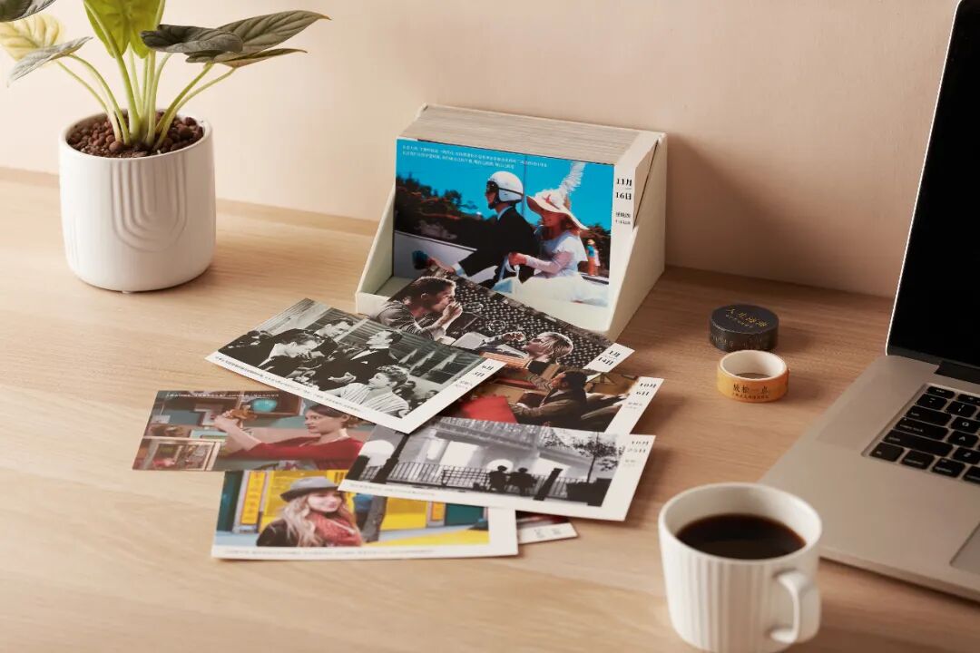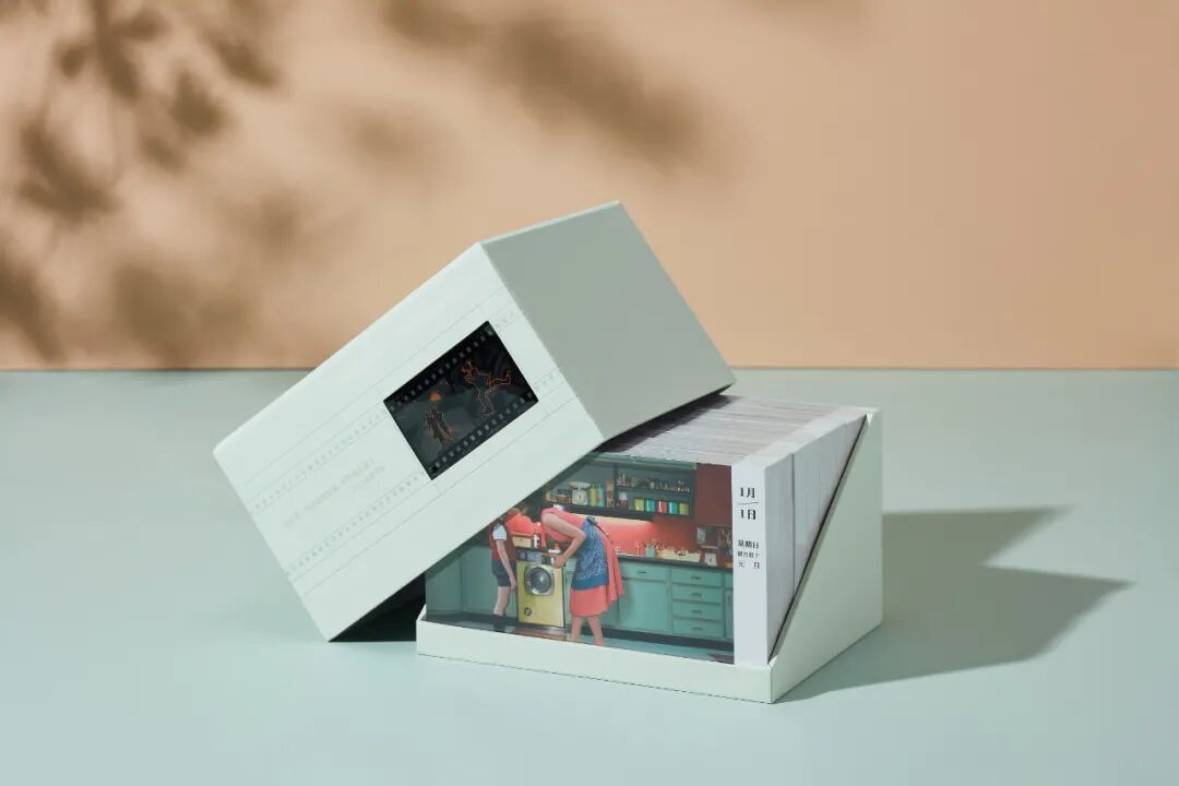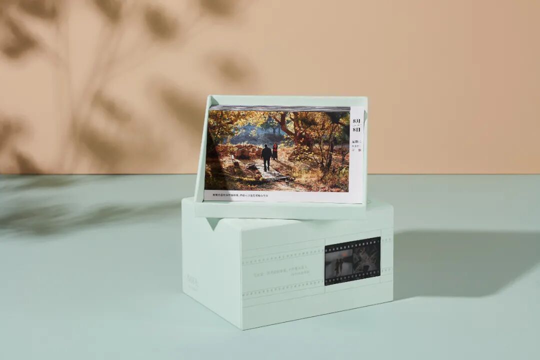 为了和“快乐”更搭,我们第一次选择了浅色系的外盒。一开始想做凹凸的“浮雕”效果,但怎么选都没有特别合适。它的特别之处在于两面不同色,经过烫透工艺后,底面的颜色会显现出来。(当然价格也让Sir在感叹物超所值的同时感到肉痛)再想想外面明信片3-5块一张,现在100多能一次过拥有365张,不要再说它贵了,Sir真替它冤。没有“必须要怎么用”,但Sir会建议你像下图这样——去年的“对她说”,由于纸张比较脆,加上快递有暴力发货的情况,后台有“毒饭”反馈盒子收到后有破损。(如果还有售后问题未解决,也可以现在联系客服,我们会负责到底)这些售后Sir都看到了,今年“稳固度”来了个全面升级。为了发货放心,考察了5家供应商,选了里面靠谱的,承重扛摔测试做了几回,最大程度保证它的“安全”。电影最后,卓别林挽着女主的手,并肩走在空无一人的大道上。为画面加上太阳和色彩,也是我们私心加上的“结局”——