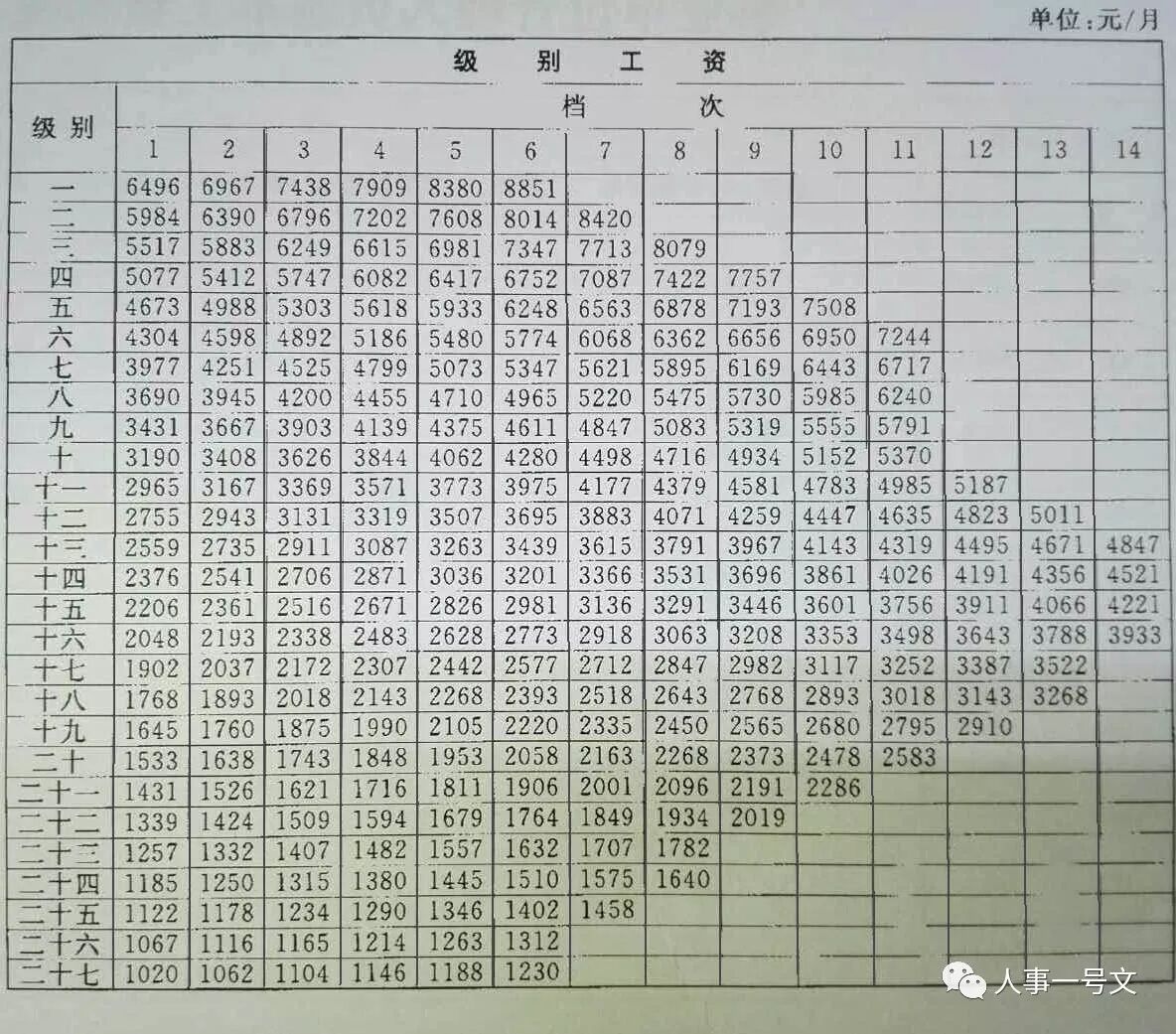 调整后的级别工资标准: