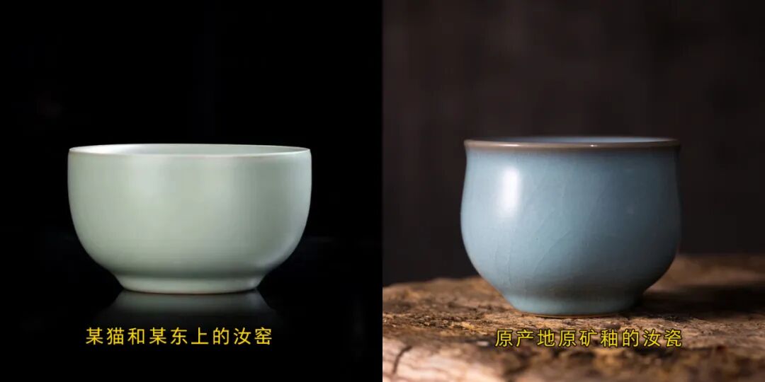 在一般人的印象中,汝瓷很贵,价格都在上千,甚至上万上亿。但是为什么,有时候在网上看到二三十块钱的汝窑器具?真相很简单,因为市场上的汝窑不是汝瓷,只是颜色相近而已。汝窑实为无光颜色釉,和景德镇那些红黄蓝色釉质本质上没有任何区别;汝瓷的天青是复合色,它里面包含了深浅明暗等各种变化,才会如此明丽而澄净,优雅而深邃。而市场上的汝窑,只是一种无光颜色釉,通过钴蓝等各种人工添加物质配置而成的颜色釉。