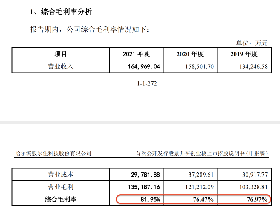 具体来看,2019年、2020年和2021年,敷尔佳的综合毛利率分别为76.97%,76.47%和81.95%。