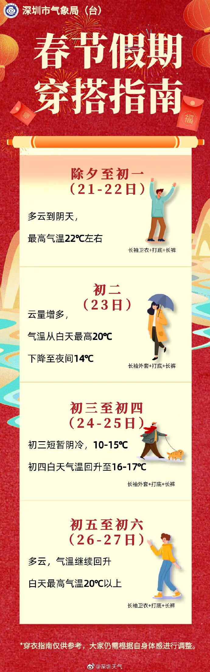 初三至初四(24-25日):多云,最低气温10℃左右,初三短暂阴冷,气温10-15℃,初四白天起气温回升至16-17℃。